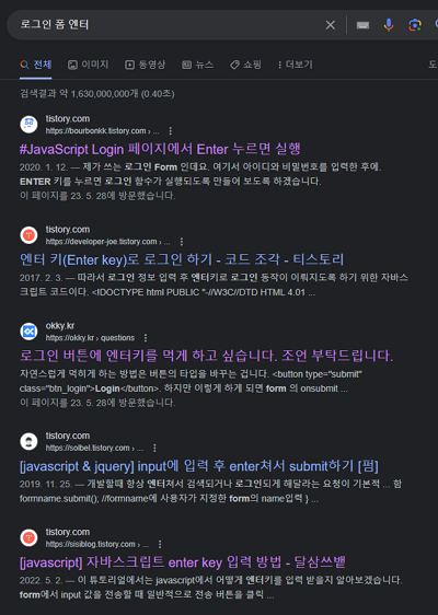 . 보통은 로그인폼에서 로그인 정보(아이디/비밀번호)를 입력하고 엔터를 눌러 로그인을 시도한다.