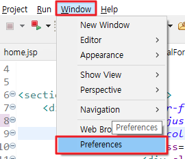- 이클립스(혹은 STS)의 설정에 들어간다. (Window-Preferences)