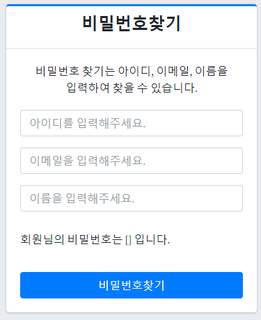 - 비밀번호 찾기는 아이디,이메일,이름 비밀번호 찾기를 이용