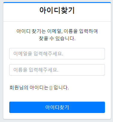- 아이디찾기는 이메일과 이름을 입력하고 비동기 처리