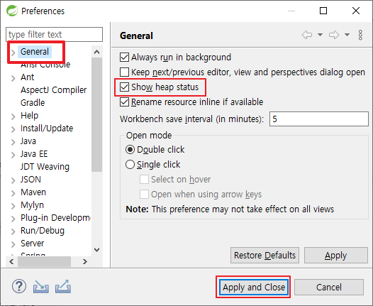 - "Show heap status" 를 체크해준다.
