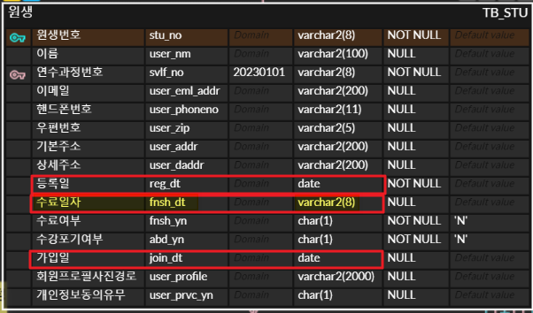 그래서 db slect절에 다음과 같이 형식을 다음과같이 변환해서 조회한다.