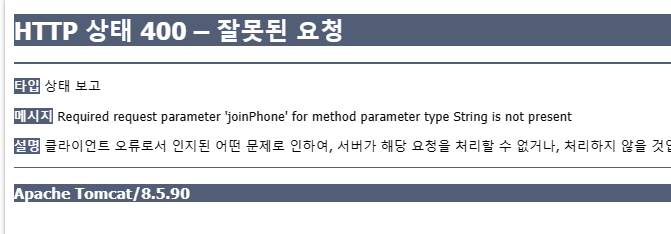 WARN : org.springframework.web.servlet.mvc.support.DefaultHandlerExceptionResolver - Resolved [org.springframework.web.bind.MissingServletRequestParameterException: Required request parameter '파라미터명' for method parameter type String is not present]