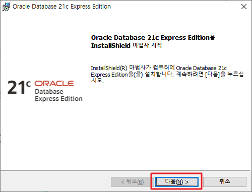 - Oracle Database 21c Express Edition for Windows x64를 다운받습니다.
