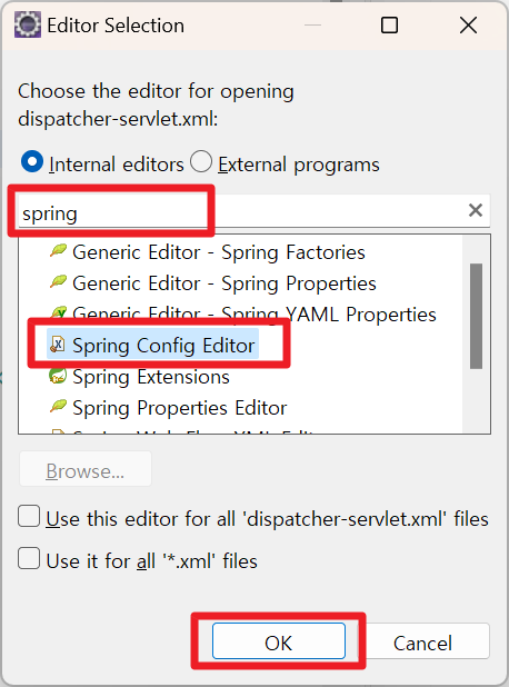 - Spring Config Editor를 선택하고 OK를 누릅니다.